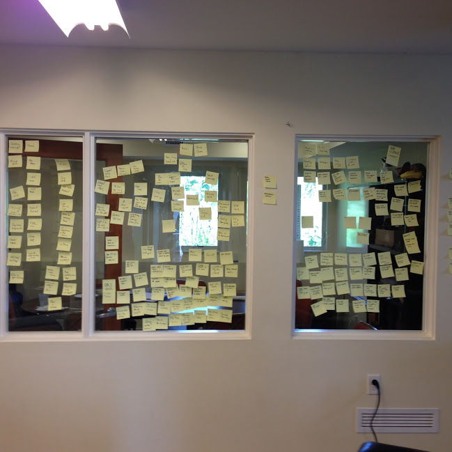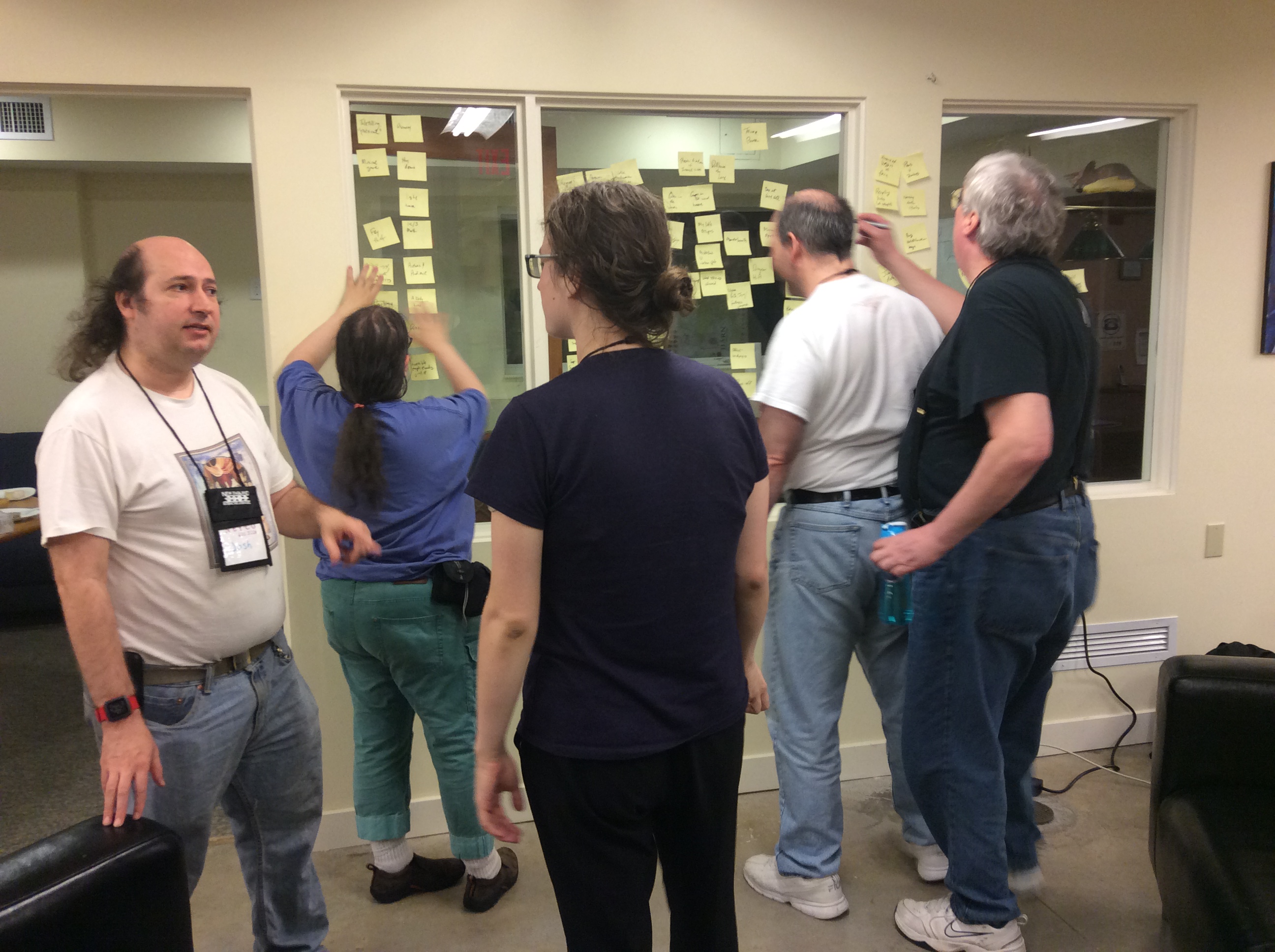 So, all the LARP topic Post-Its come down, because the LARP will call for its own new set, with multiple colors. But first, it's time for lunch.