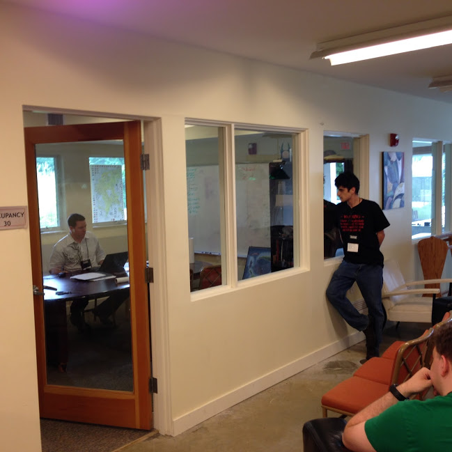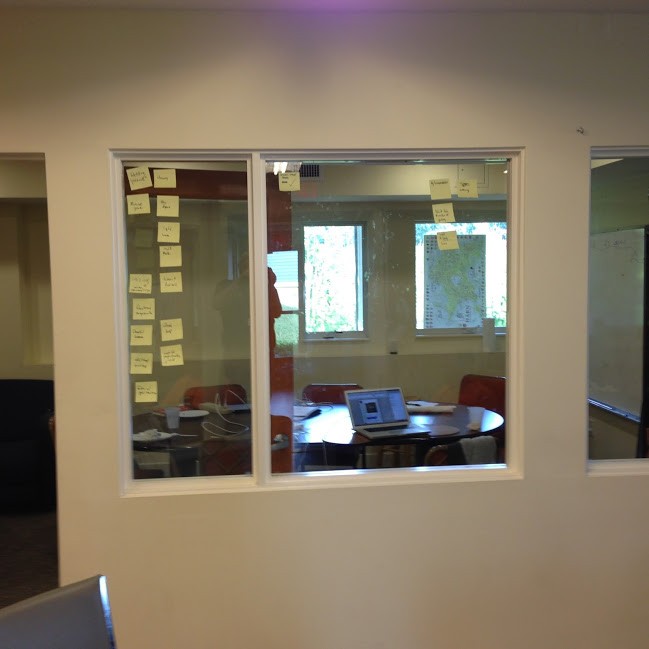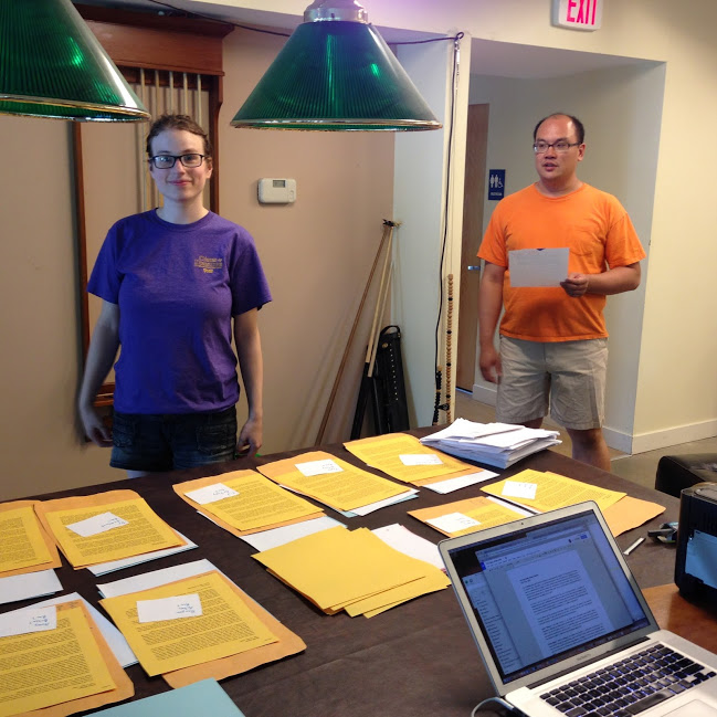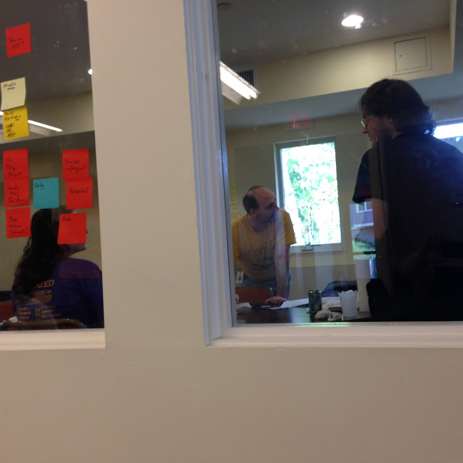 There are document templates being created on Google Drive. We're putting words in place. Occasionally, other people at NELCO come downstairs to see what we're doing.