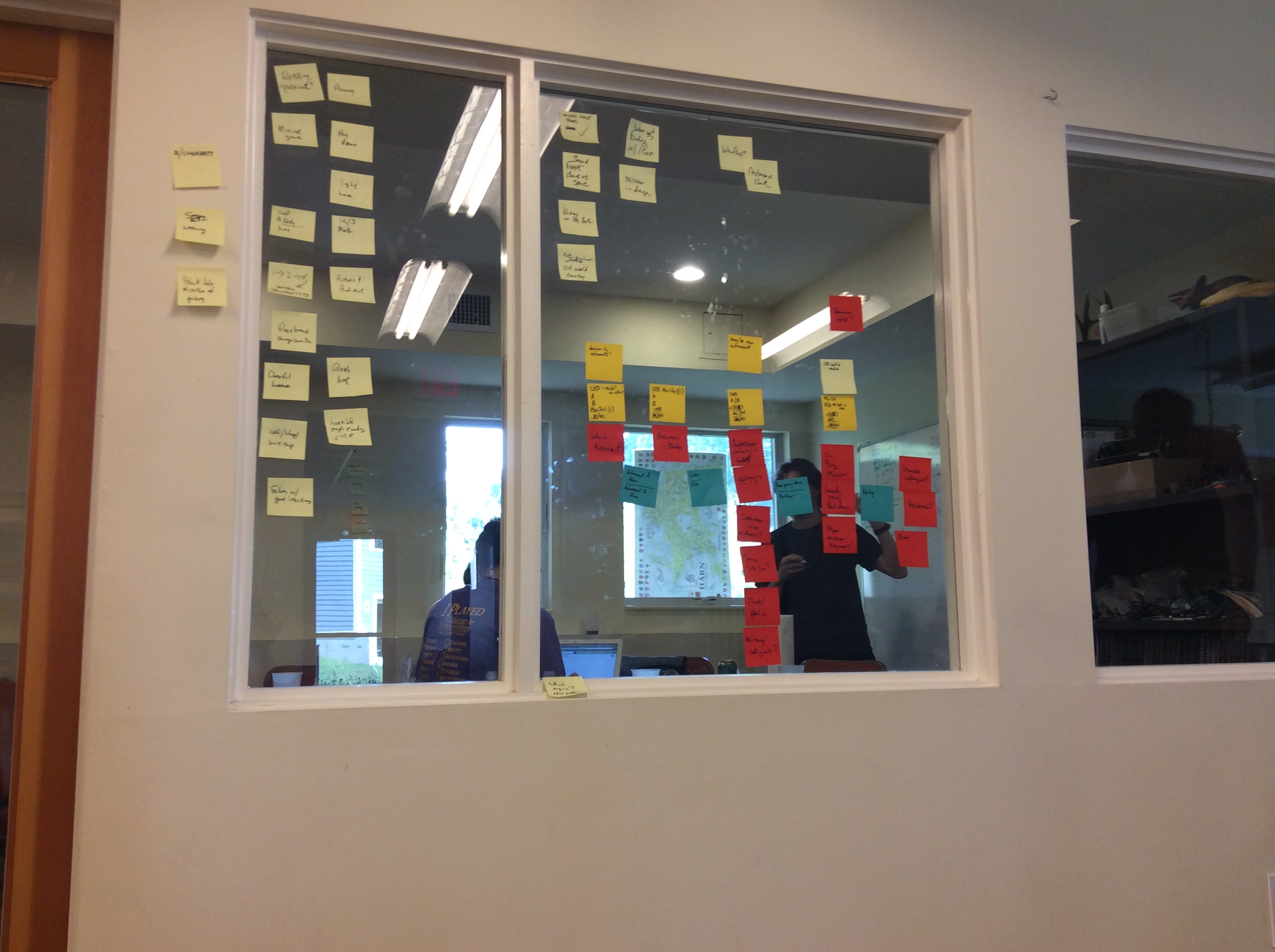 Four of the team (Jeff, Joshua, Lisa, and Gaylord) are off fleshing out the structure of the game, which is an interesting scene-based structure.