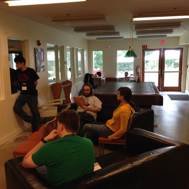 Taking a break in the long dark tea-time of the Build Your Own Game LARP writer's soul. The NELCO site is quiet. Everyone else has sanely gone home to bed, to get a decent night's sleep. It's only the die-hard writers still at work, writing the last needed bits, reviewing what others have written, and checking the important continuity issues that can break a LARP run. Four of our authors are sleeping, to get up in the morning with clear minds and fresh eyes. (Alon has joined the others in sleep.) Three of us (Jeff, Sarah, and Gaylord) remain awake, to finish filling in the blanks.