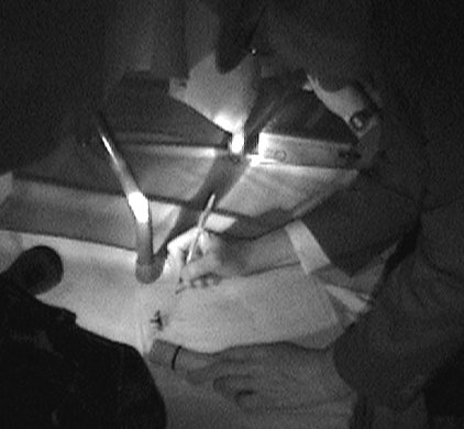 In the darkness, the words take on a difficult and tortured font, and the shadows move on their own.